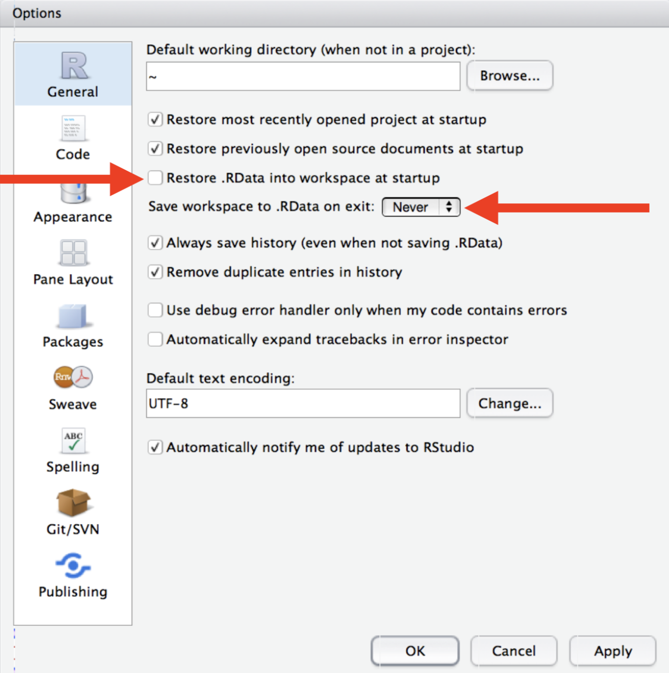 .Rdata file..Rdata file.Tools > Global Options.usethis::use_blank_slate()
